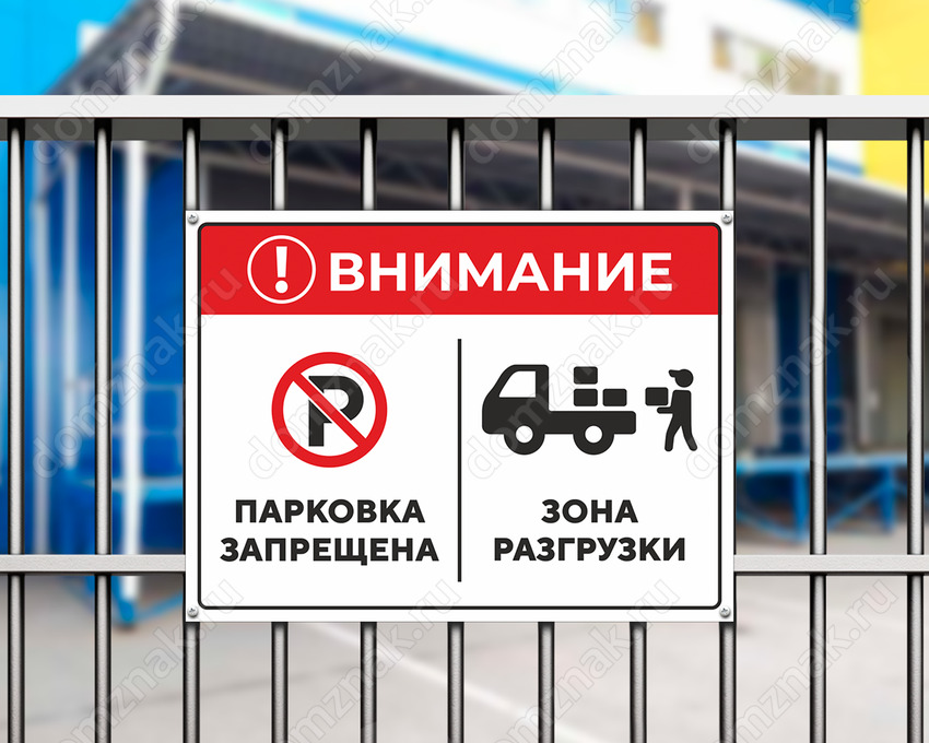 Вы можете заказать Табличку «Парковка запрещена. Зона разгрузки.» по индивидуальному дизайну или воспользоваться готовым вариантом от нашей компании.