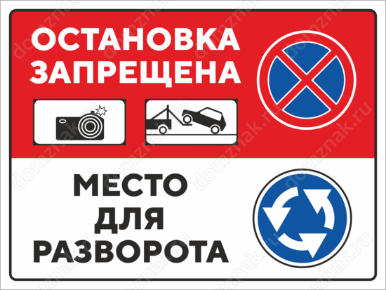 Табличка «Остановка запрещена. Место для разворота.»